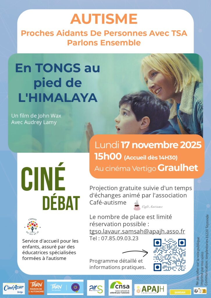 La projection suivie d’un temps d’échanges animé par l’association Café-autisme, sera l’occasion de partager des expériences, des questionnements et des pistes de réflexion autour de l’autisme et de la place des proches aidants.
